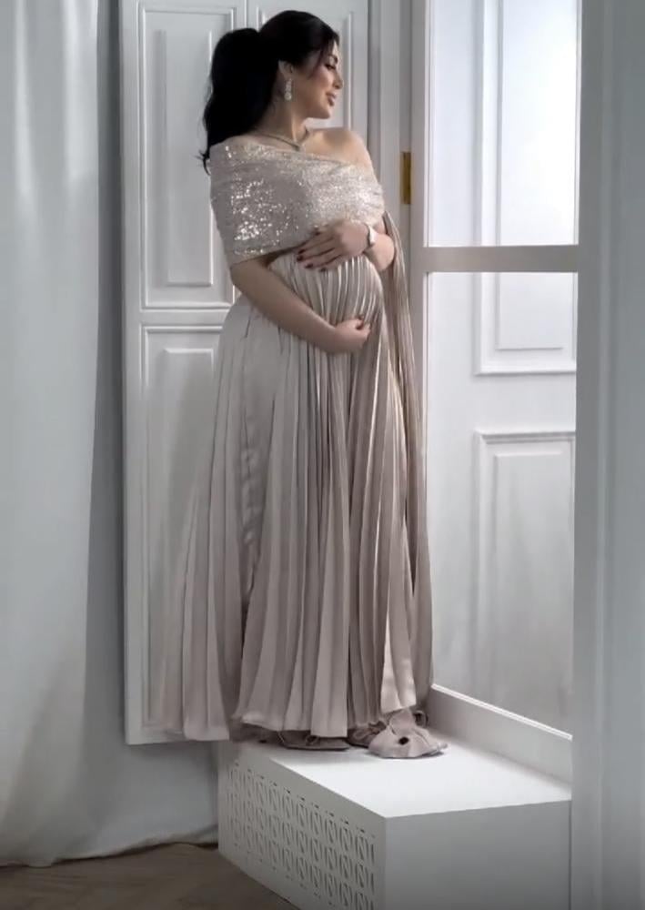 فستان سهره الخامه/ مخمل +جورجيت +تطريز يدوي