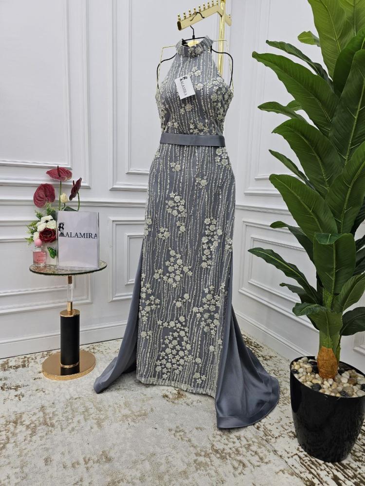 فساتين لون فضي تفاصيله الراقية تمنحك حضورًا مميزًا بفضل خاماته الفاخرة التي تتنوع بين المخمل الناعم والجورجيت الخفيف مع تطريز يدوي يضفي لمسات ساحرة